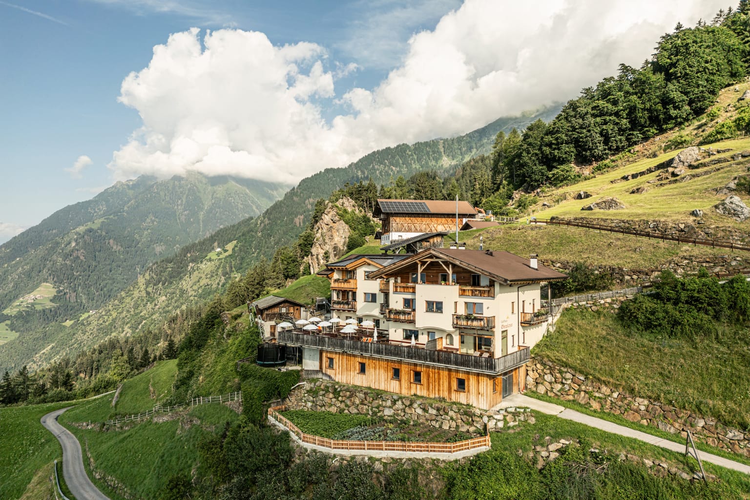 Inmitten der atemberaubenden Bergwelt liegt unser idyllischer Bergbauernhof auf 1310 m Höhe, im malerischen Ort Vellau, oberhalb von Algund. Die Anreise führt Sie über eine charmante Bergstraße, die Sie nach nur 10 km in eine Oase der Ruhe und Natur führt. Der Hof selbst thront an einem sonnigen, stillen Platz und bietet einen grandiosen Ausblick auf die umliegende Berglandschaft, die in alle vier Himmelsrichtungen für spektakuläre Panoramen sorgt.